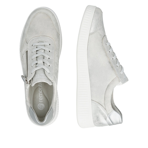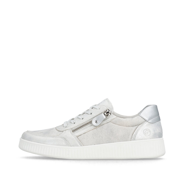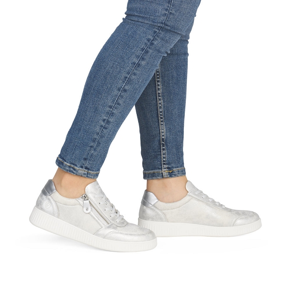 Pour se sentir libre, adopter Remonte !!! Remonte D2E05 90 est une tennis femme stretch argent. Cette chaussure basse à lacets habillera très bien votre pied et vous apportera un bon maintien avec sa fermeture éclair. Idéale pour tous les jours grâce à une semelle intérieure amovible SoftFoam (mousse amortissante). Cette paire de chaussures est munie d'une voute plantaire pour plus de confort . Idéale pour le quotidien, cette chaussure s'adaptera parfaitement avec toute votre garde robe. Nous vous recommandons de choisir votre pointure pour les chaussures Remonte. Livraison rapide, chez-vous en 48h.