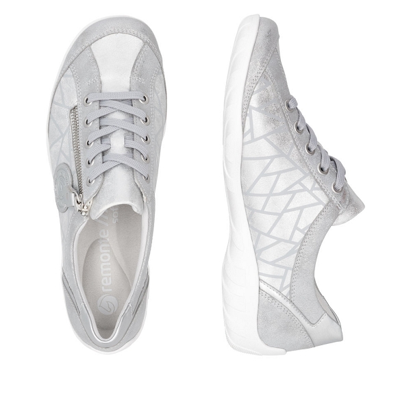 Pour se sentir libre, adopter Remonte !!! Remonte R3408 90 est une tennis femme argent. Cette chaussure basse à lacets habillera très bien votre pied et vous apportera un bon maintien avec sa fermeture éclair. Idéale pour tous les jours grâce à une semelle intérieure amovible SoftFoam (mousse amortissante). Cette paire de chaussures est munie d'une voute plantaire pour plus de confort . Nous vous recommandons de choisir votre pointure pour les chaussures Remonte. Livraison rapide, chez-vous en 48h.