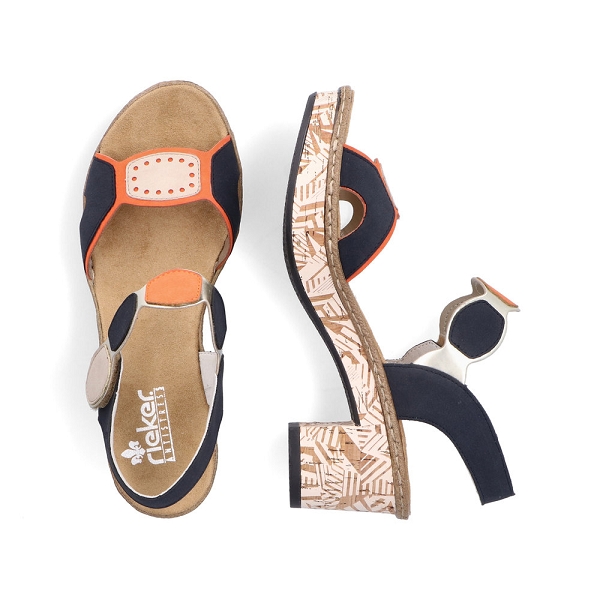 Rieker, la marque au trés bon rapport qualité prix! RIEKER 63876 90 est un nue pieds femme bbleu, blanc et orange. Ce nue pieds Rieker sera idéale pour les femmes qui veulent adopter un style sportswear. Cette chaussure qui possède une bride réglable et un talon détaché est à découvrir chez Rieker-webstore.fr. Cette chaussure est munie d'une voute plantaire qui vous apportera un confort optimal. Ce modèle fera vite partie de votre quotidien pour un style à la fois mode et décontracté. Nous vous conseillons de choisir vos Rieker à la pointure. Livraison rapide, chez-vous en 48h.