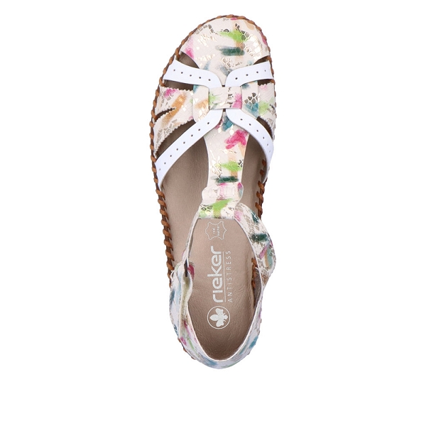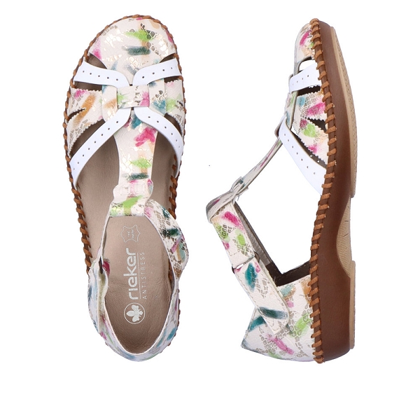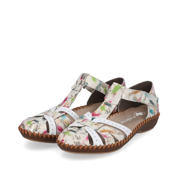 Rieker, la marque au trés bon rapport qualité prix! RIEKER M1650 91 est un sandales femme fleuris sur fond blanc. Cette sandale Rieker sera idéale pour les femmes qui veulent adopter un style sportswear. Cette chaussure qui possède une bride réglable sur le coup-de-pieds est à découvrir chez Rieker-webstore.fr. Cette chaussure est munie d'une voute plantaire qui vous apportera un confort optimal. Ce modèle fera vite partie de votre quotidien pour un style à la fois mode et décontracté. Nous vous conseillons de choisir vos Rieker à la pointure. Livraison rapide, chez-vous en 48h.